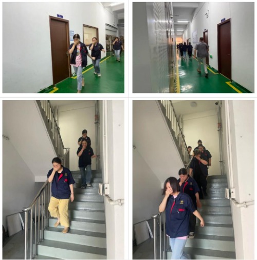 Kako je zvučao alarm, svi zaposlenici odmah su ušli u hitnu stanju. Pod vodstvom vodiča za evakuaciju, svi su se savijeni, prekrili usta i nos, i brzo i uredno evakuirali u sigurno područje duž unaprijed određene rute.