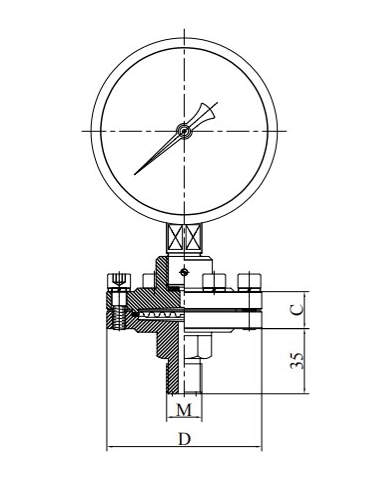 Ovaj je instrument neizravno mjerenje. Deformacija izolacijske dijafragme pod tlakom izmjerenog medija, brtvena tekućina je pod tlakom, a tlak se prenosi na tlak.