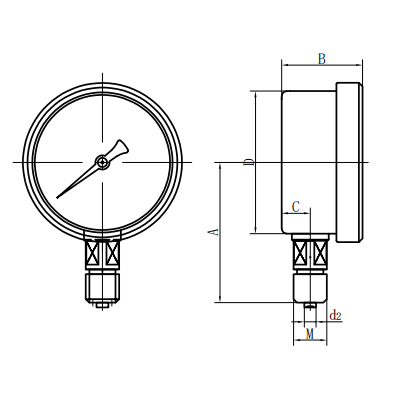 | Y150 -Ⅱ | 88 | 49 | 55 | Φ 150 | / | / | Φ 6 | M20 × 1.5 |